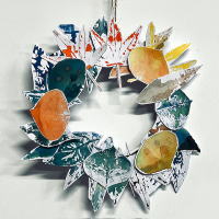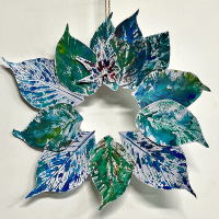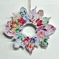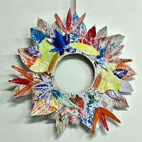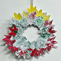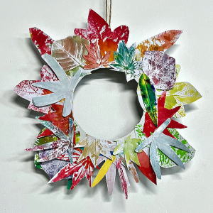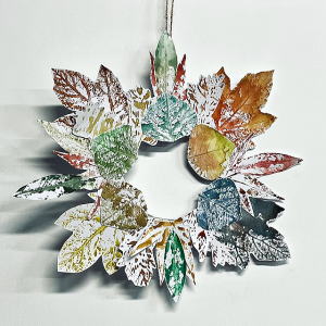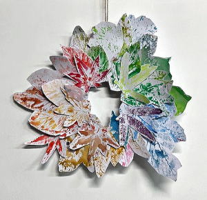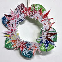 葉っぱ版画のリース